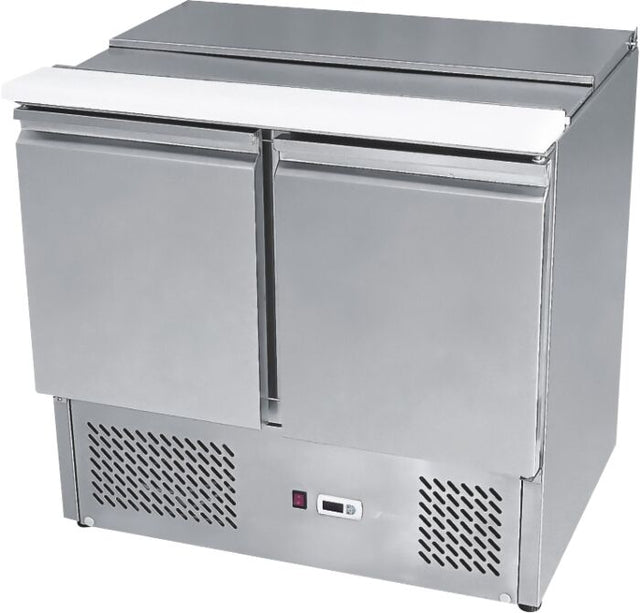 The 2 Doors Sliding Lid Saladette Fridge offers convenient access to fresh ingredients with its sliding lids and spacious 900 mm size. Keep your salads crisp and cool with the ESL3800 model, perfect for any busy kitchen or food establishment. Professional and objective, this fridge is ideal for storing your salads and ingredients for longer periods.