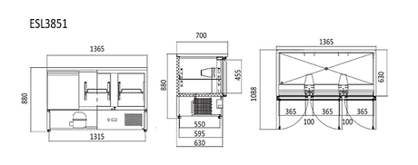 3 DOORS SLIDING LID SALADETTE FRIDGE 1365 MM ESL3850